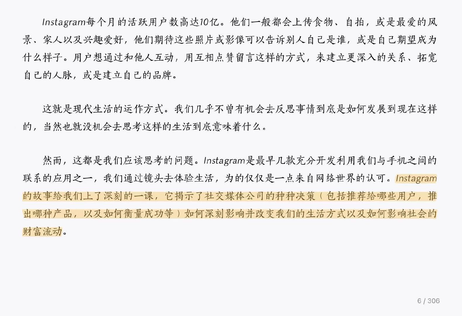 最近在微信读书上看完了 《解密 Instagram》,非常非常喜欢。我平时刷 Twitter 和 Instagram 的时间非常多,差不多除了刷豆瓣之外就是打开 Twitter 和 Instagram。这本书里用了很多的篇幅去写两个产品之间的竞争,还有 Instagram 创始人 Kevin Systrom 丰富的内心戏 (从创建公司,到被 Facebook 收购,到最后退出 Instagram)。